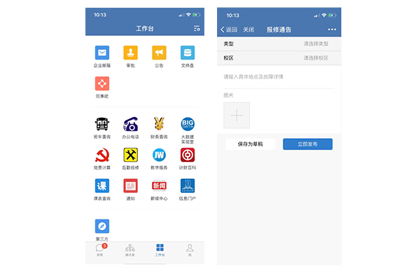 1.登录方式:点击大连民族大学“企业微信”,在“工作台”中选择“后勤报修”平台,点击“报修”。