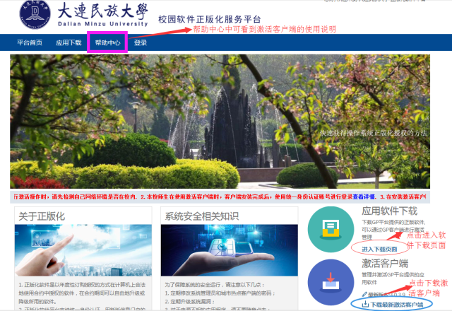 为了让各位老师能更好地体验正版化软件,我们专门编写了相关文档,上传在正版化平台页面的帮助中心,供老师随时查阅。在激活中遇到问题时请及时联系网络中心,电话:87656261(内线:5261)。