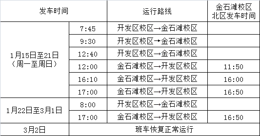 2018年1月15日至2018年3月2日班车安排表