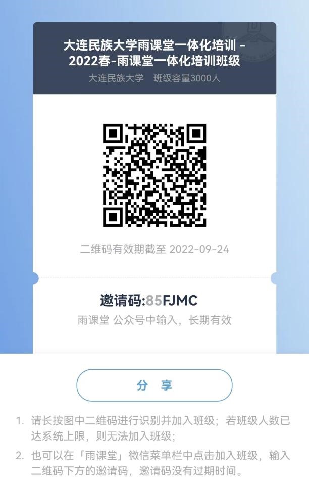此次培训采用大连民族大学雨课堂班级进行直播培训,请各位老师提前扫码绑定身份加入班级观看。