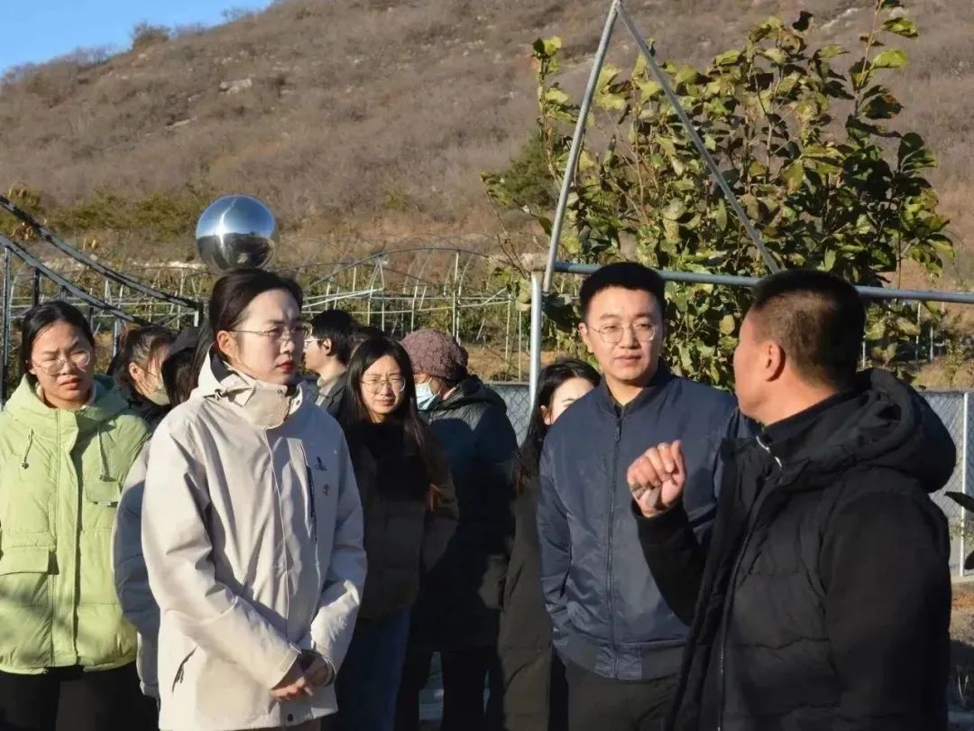 随后,师生一行人来到后海村樱桃种植基地,“把樱桃种在山坡上,再在樱桃园里撑起挡雨棚,雨水多的时候就不会受涝”,“通过‘压枝’,让一棵樱桃树分为三层,每一层的樱桃都能充分受到光照、享有足够的生长空间”……徐茂松书记仔细地向师生们讲解后海村樱桃种植的先进办法。