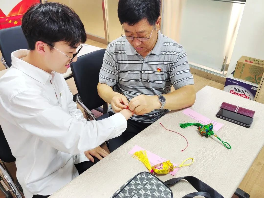 活动中,社区和支部党员分别朗诵了爱国主义诗篇和端午节相关诗词,诵经典、学党史、赢香包、系彩绳……当老党员为青年党员系上彩绳的一瞬,是祝福亦是责任传承。大家共同重温历史文化韵味,感受诗歌中的民族精神与家国情怀,进一步增强爱国主义信念。