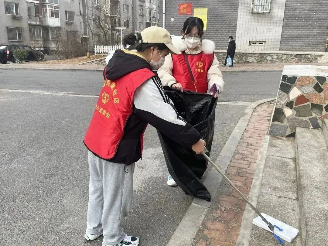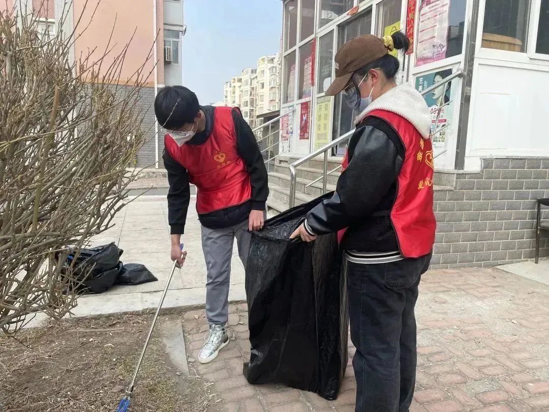 针对社区中难以清理的烟头、碎玻璃、包装纸等垃圾,志愿者们拿起工具深入到各个角落,所过之处留下的都是整洁干净的路面,得到了社区保洁阿姨的大力点赞。