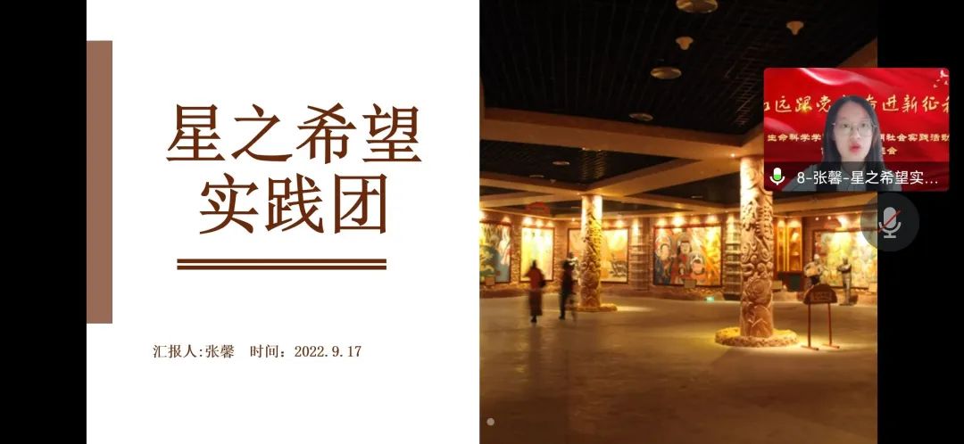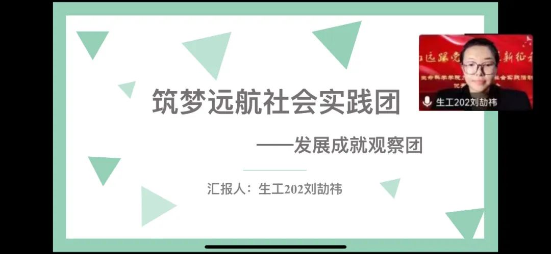 学院团委负责老师,辅导员老师作为评委参加此次评选会。各组同学向评委们展示了社会实践的内容与成果,并分享了团队成员们在本次社会实践的收获与感悟。用自己的语言讲解实践活动中的所见、所感、所思,也带领全体评委与参会同学们跨越时空的组合一起见证了祖国各地的发展变迁。