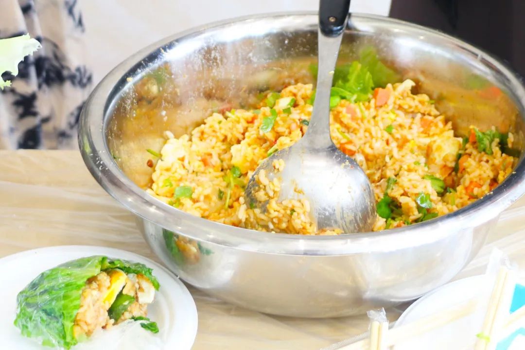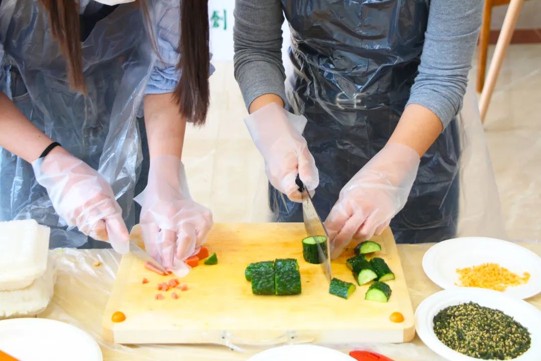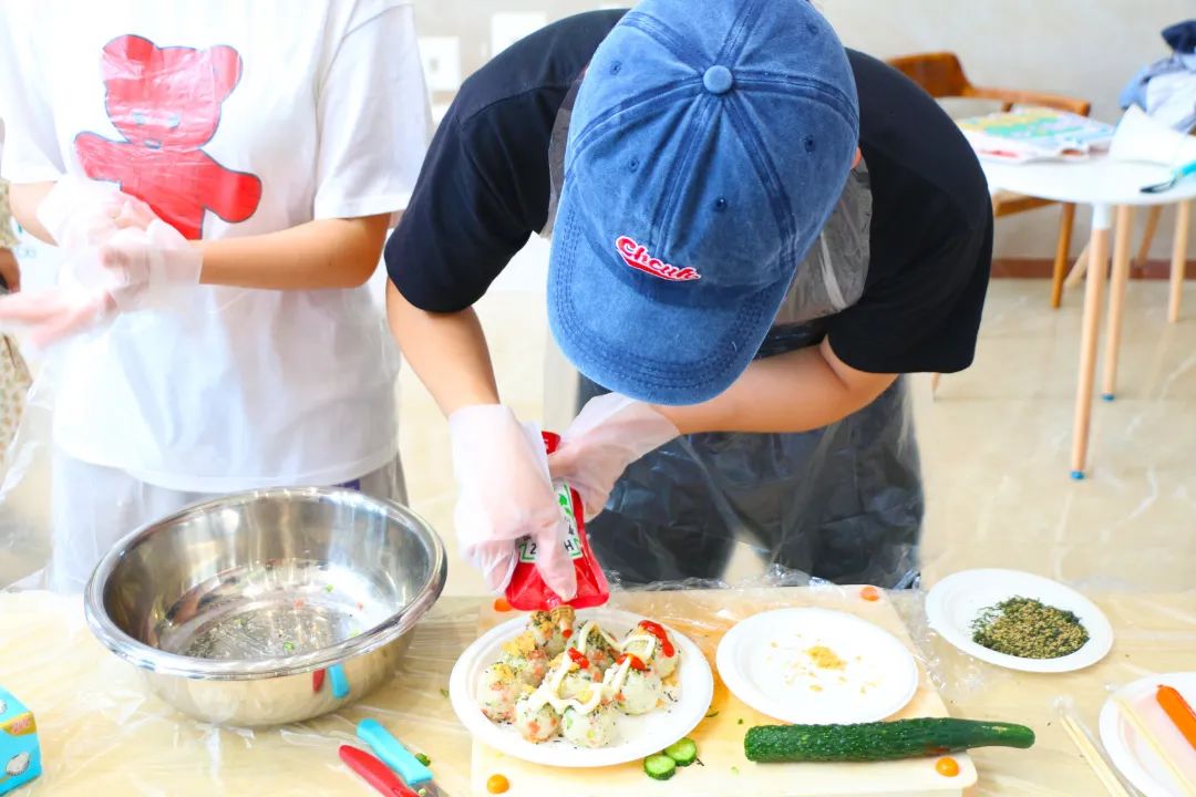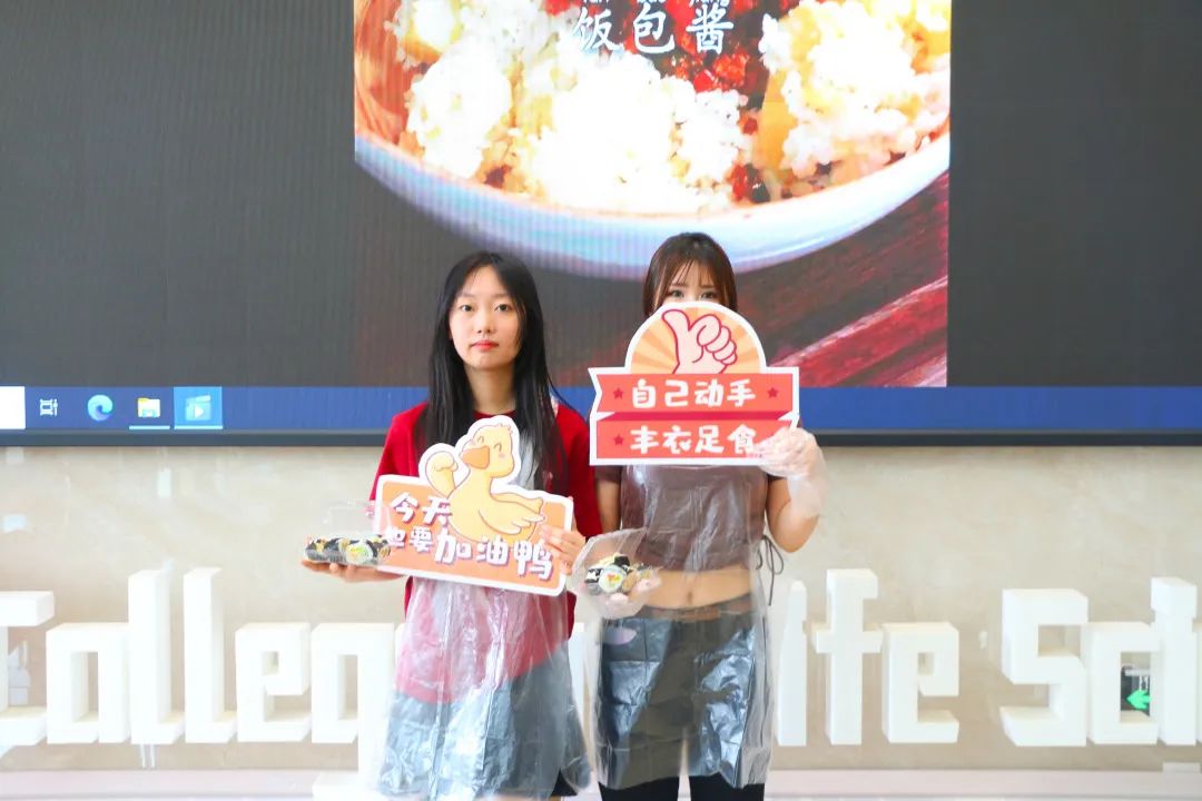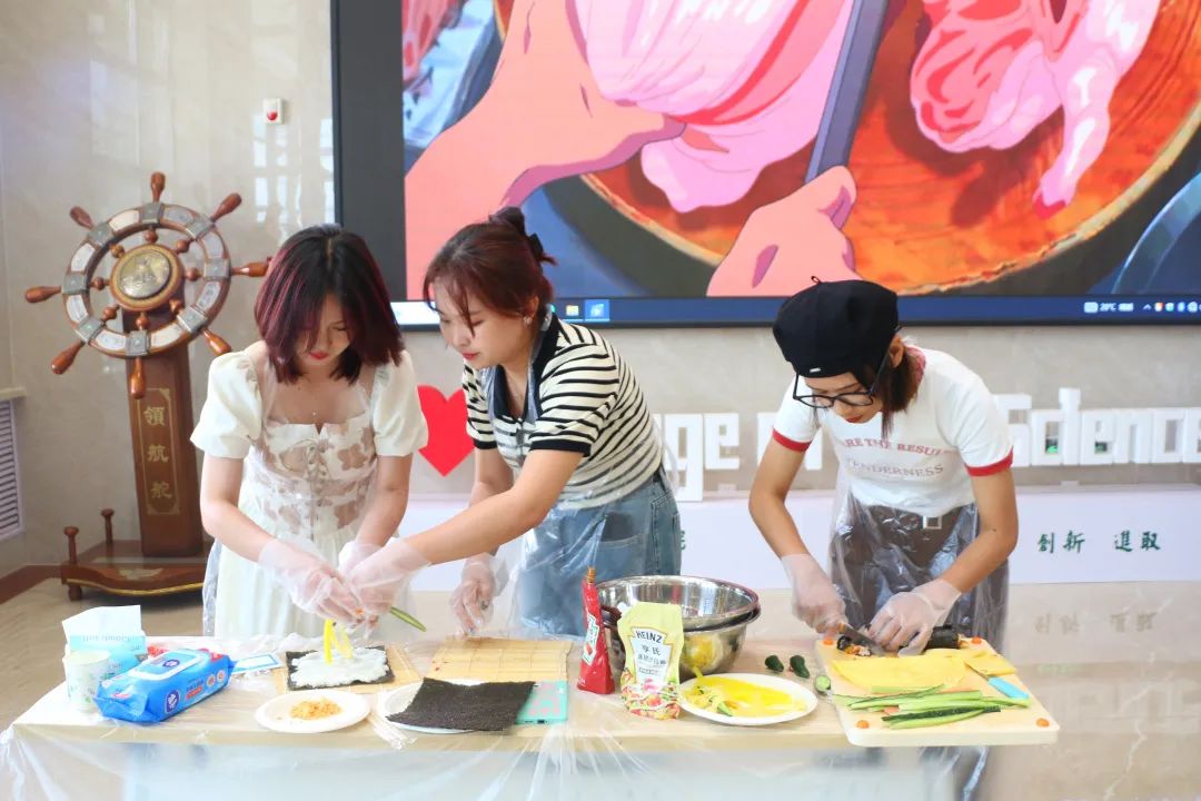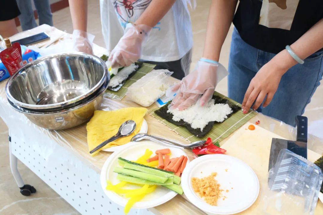 手作团队“招募令”发出后,同学们热情高涨,很快24支手作团队就集结完毕。活动现场更是热火朝天,还未开始大家就制定了“厨神攻略”:你铺米饭、我放食材、他整理摆盘……共同呈现了一场美食盛宴。