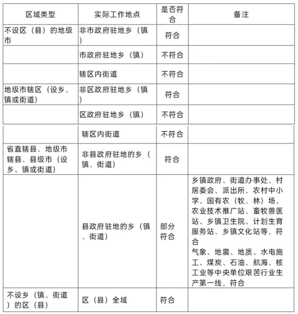 2. 实际工作地点位于乡(镇)的监狱等单位,应提供工作地点情况说明。