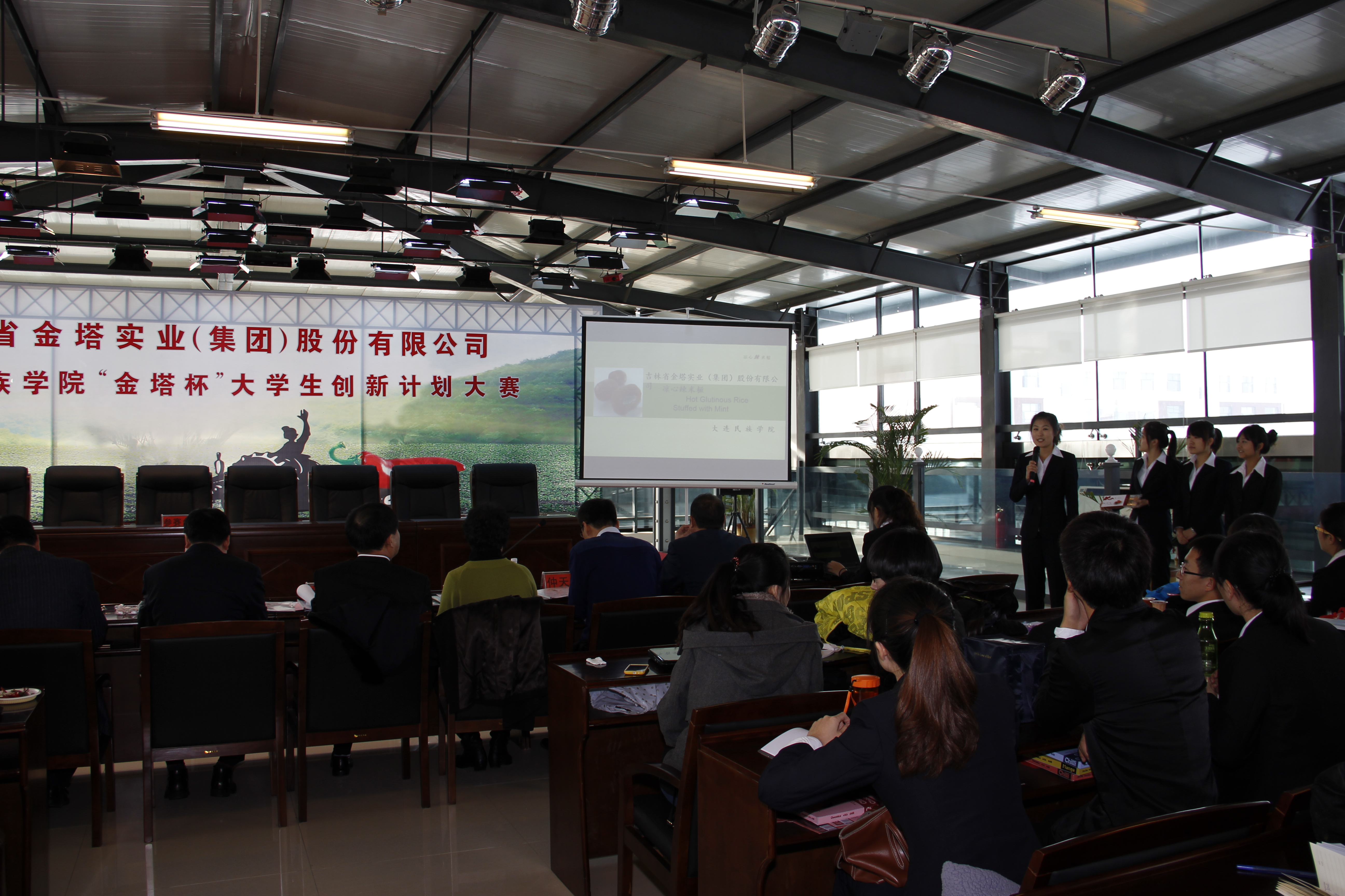 11月15日,大连民族学院“金塔杯”大学生创新大赛决赛在吉林省金塔实业(集团)股份有限公司(以下简称:金塔集团)举行,学生处处长袁传军、生命科学学院院长胡文忠、副书记仲天宝、金塔集团董事长杨茂义、书记王桂兰等出席并担任大赛评委。经过现场陈述、答辩和产品品评等环节,最后,由姜爱丽老师指导的食品102班安琪琪团队以“叶恋椒风味小菜”荣获大赛金奖,获奖金4000元,其他两个团队分别获银奖,6个团队获铜奖。
