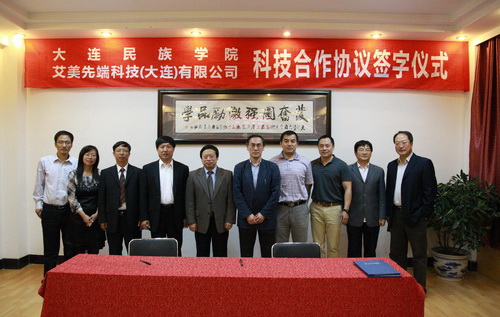 5月10日,我院与艾美先端科技(大连)有限公司科技合作协议签字仪式隆重举行。学校副院长段晓东,艾美先端科技(大连)有限公司董事长张世伟、研发总监张守臣,学校科技处、学科办相关人员,生命科学学院领导、各系主任、中心主任、师生代表参加了仪式。段晓东副院长和张世伟董事长在科技合作协议书上签字。仪式由科技处处长袁学刚主持。