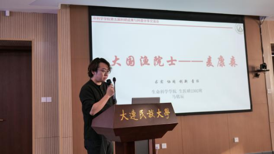 会议第一阶段,各位汇报人讲述了四位科学家感人事迹和科研贡献。在他们身上所展现的精神力量是我们生科人科研信念的灯塔,指引我们不断前进,勇攀科学的高峰。金麟、李腾飞、张月阳、马铭辰4位同学分别以“雪域高原播种者”、“一株济世草,一颗报国心”、“农业科学领域的灯塔”和“大国渔院士”为题,介绍了钟扬、屠呦呦、李振声、麦康森四位科学家的人生历程和科研进展。在他们的事迹中,同学们感受到了那些在艰苦环境条件下依然坚守岗位、无私奉献的科研工作者们的伟大精神,体会到了科研工作者们深厚的家国情怀以及他们为国家和人民所做出的巨大贡献,领略到了科研在国家发展中所发挥的重要作用。