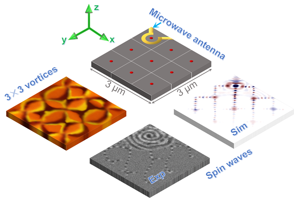 民大新闻网讯 日前,物理与材料工程学院董斌教授科研团队在磁涡旋研究领域取得突破性进展。相关工作先后以“Propagation of spin waves in a 2D vortex network”和“Construction of 1D vortex chain using a chiral nanostructure”为题在纳米科学类顶级期刊《Nano Letters》(DOI: 10.1021/acs.nanolett.1c00971,IF=11.238)和材料科学类Top期刊《Advanced Science》(DOI: 10.1002/advs.202001040,IF=15.84)上发表,我校为第一完成单位,李正华教授为第一作者。