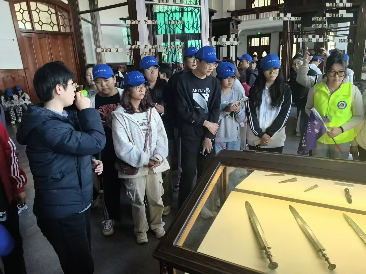第二站我们来到了旅顺博物馆,踏入馆门的一瞬间如入时空隧道。青铜器,凝聚着工匠的智慧与心血,映射出中华文明的辉煌与厚重;陶瓷,精致而优雅,展现了对美的追求与生活的智慧;书画,笔墨生辉,传递着文化的灵动与历史的深邃,构成了旅顺博物馆中璀璨的艺术星河。物材学子们通过这些丰富的文物和历史文物资料,了解了旅顺的战略地位,历史变迁和中国人民在抗击外来侵略中的不屈精神,增强了物材学子的民族自豪感。