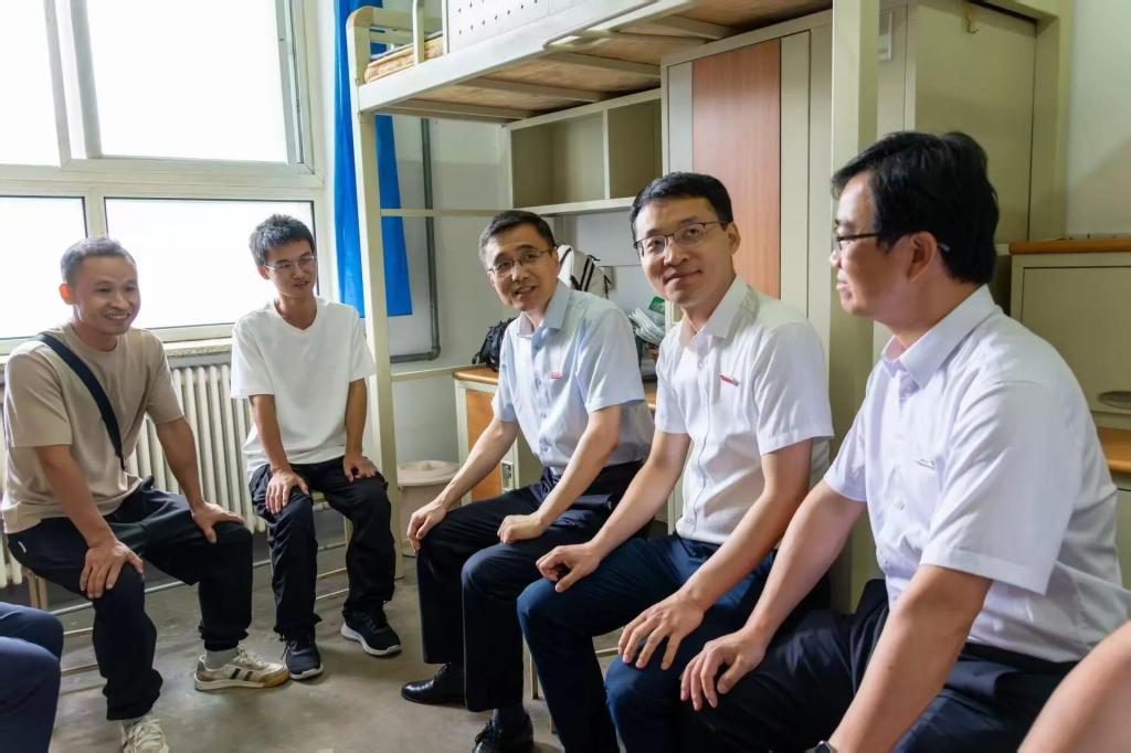 走进宿舍,领导们与新生及家长亲切交谈,询问他们从家乡到学校的行程是否顺利,关心宿舍的居住环境是否满意。