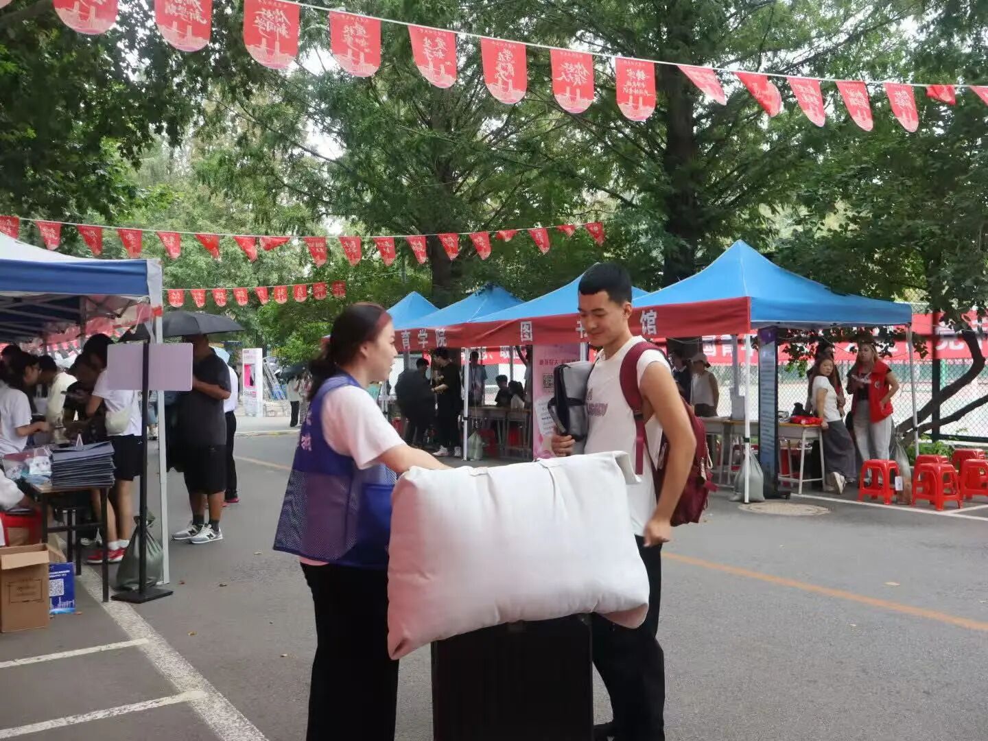报到工作有序开展,学院老师和志愿者们热情地为新生办理手续、搬运行李,用笑容与关怀,消解新生初来乍到的陌生感。
