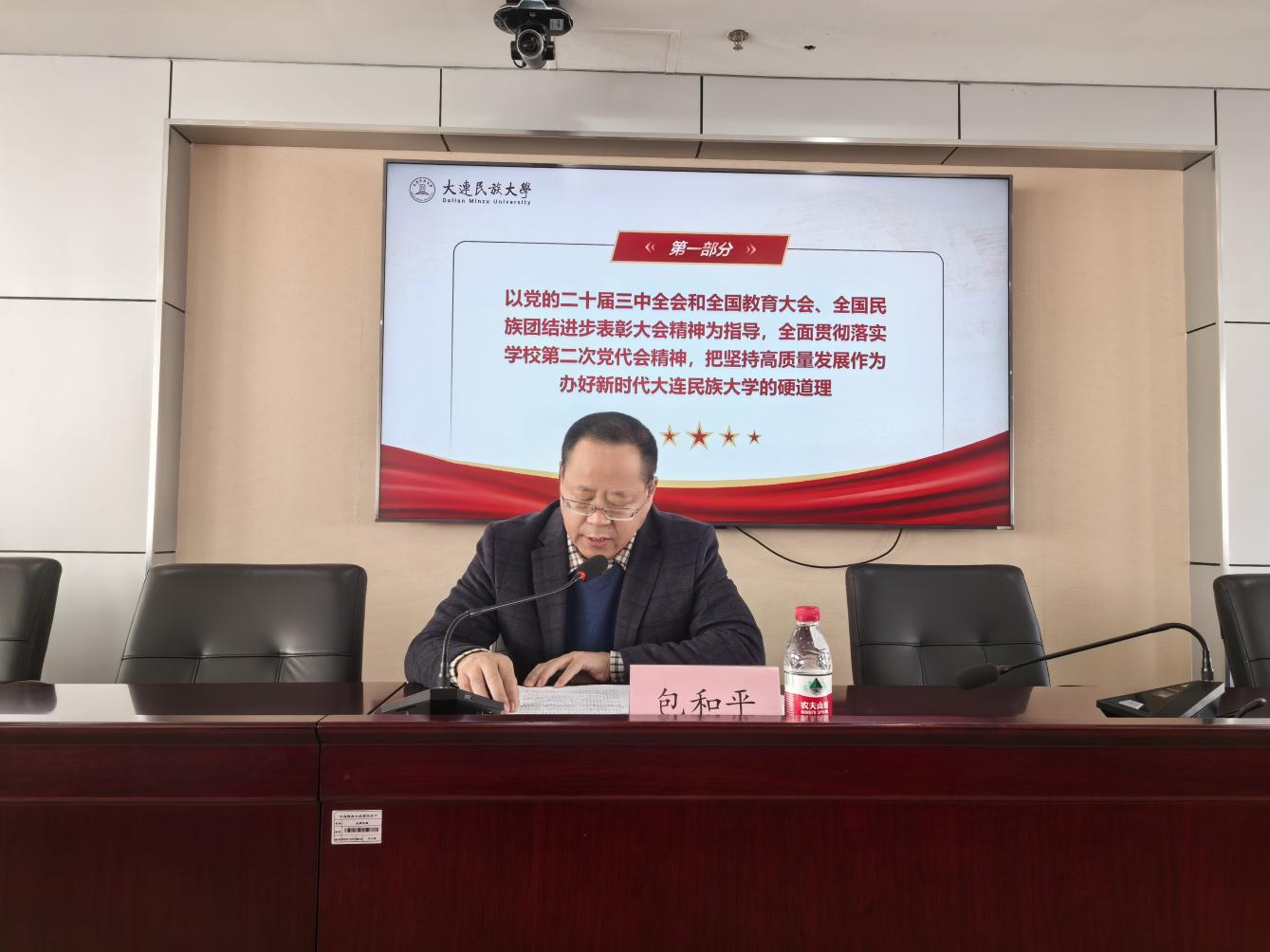 为深入学习贯彻党的二十届三中全会和全国教育大会、全国民族团结进步表彰大会精神,落实全省和全市教育大会精神,进一步贯彻落实学校第二次党代会精神,学校党委组织开展主题宣讲活动。12月11日,学校党委常委、党委宣传部部长、党委统战部部长包和平在勤德楼A804为信息与通信工程学院做宣讲报告,学院全体教师、学生党员代表参加报告会。