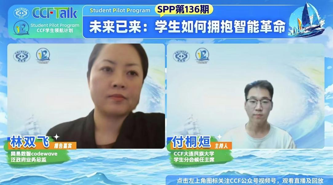 2025年6月18日19:30,由中国计算机学会(CCF)主办,CCF大连民族大学学生分会承办的CCF学生领航计划(SPP)第136期活动成功举办。本次活动采用腾讯会议+视频号直播的方式进行,全国有专家学者近1500人观看。