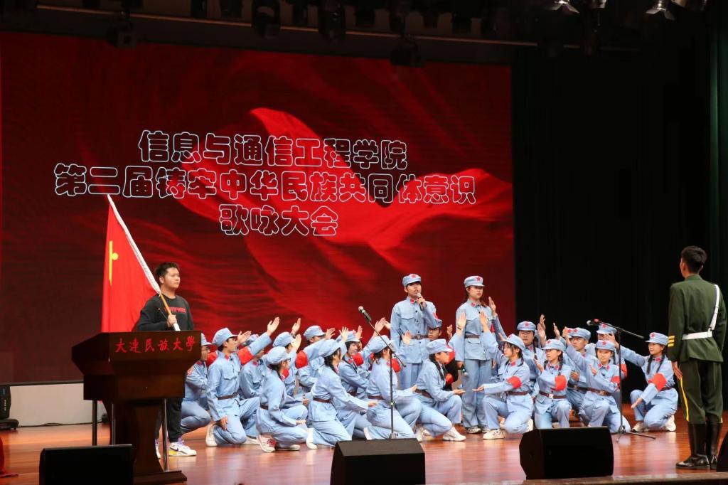 为了深入学习贯彻党的二十大精神,弘扬和传承中华民族优秀传统文化,铸牢中华民族共同体意识,培养大学生爱国、爱校的热情,近日,信息与通信工程学院举办第二届铸牢中华民族共同体意识歌咏大会,学院2022级、2023级全体学生参加。