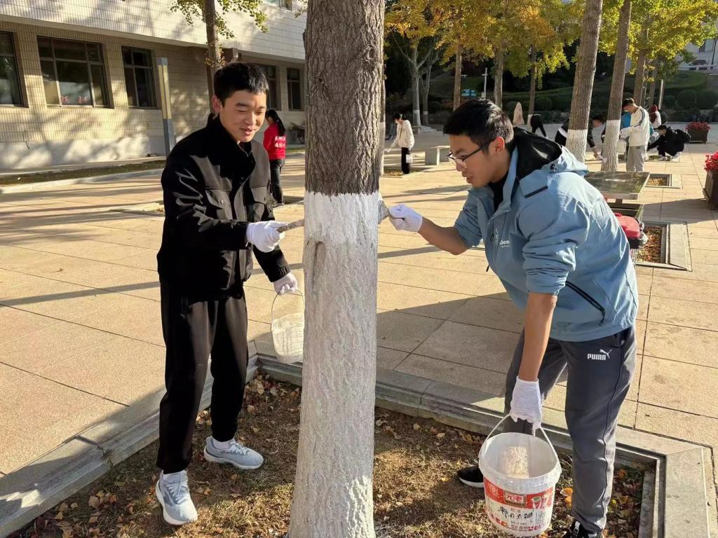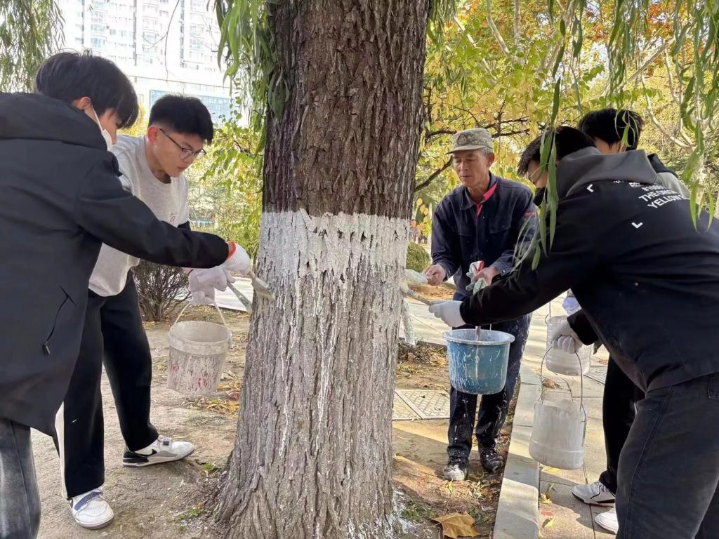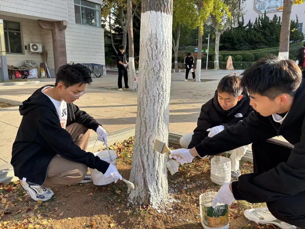 为贯彻落实习近平总书记在党的二十大报告中关于弘扬劳动精神的重要指示精神,响应习近平总书记在全国教育大会上关于引导学生崇尚劳动、尊重劳动的工作号召,信息与通信工程学院于11月4日至5日开展劳动教育第四课——“校园环境我先行 我为树木穿新衣”刷树活动。